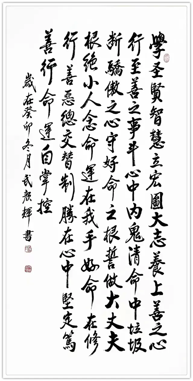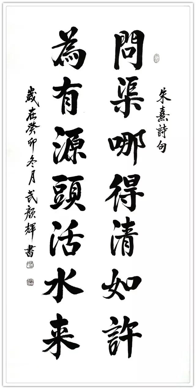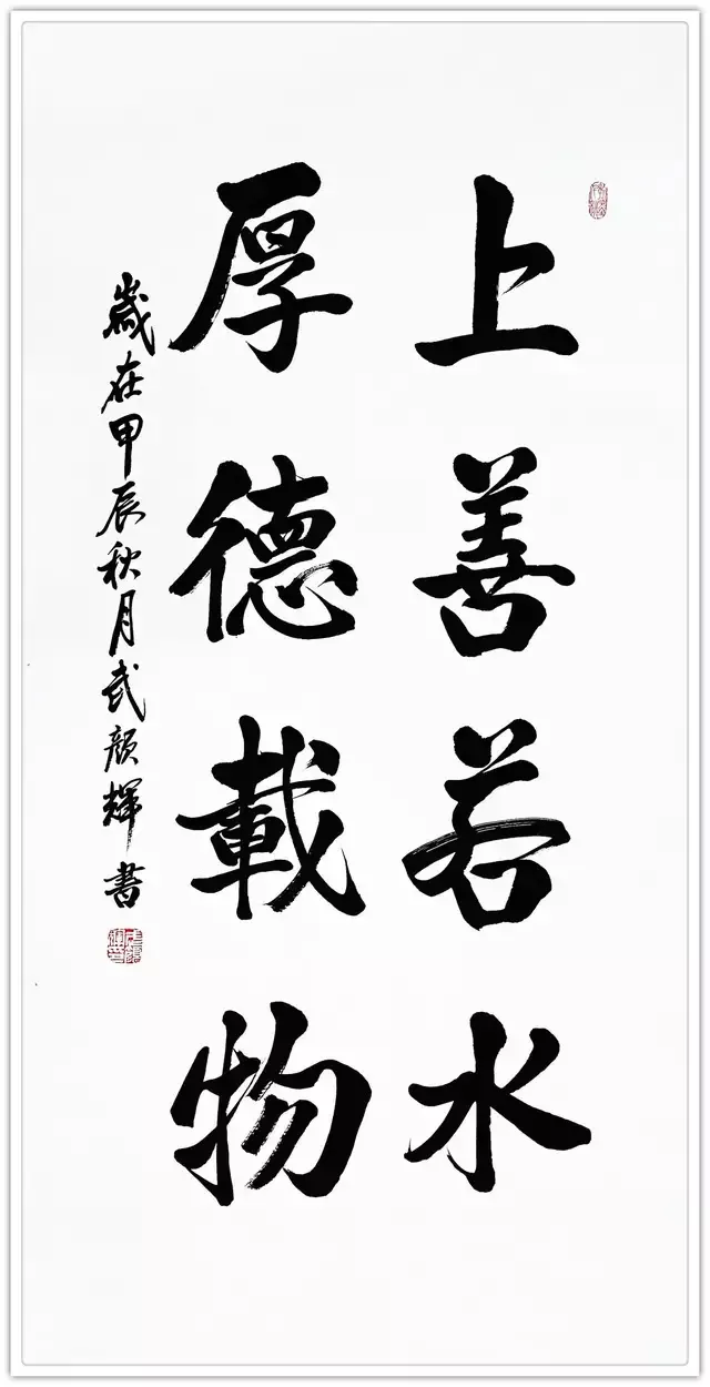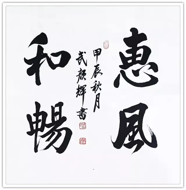 武颜辉的书法端庄遒劲,丰润饱满。其结构方正茂密,笔画横轻竖重,笔力雄强圆厚,气势庄严雄浑,雅俗共赏,深受大家所喜爱。