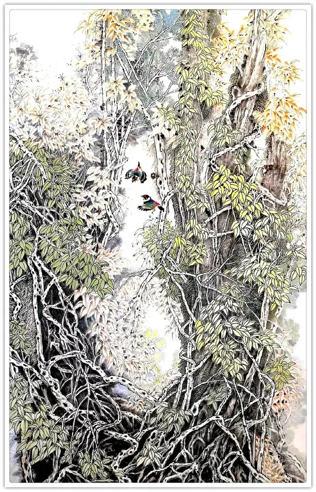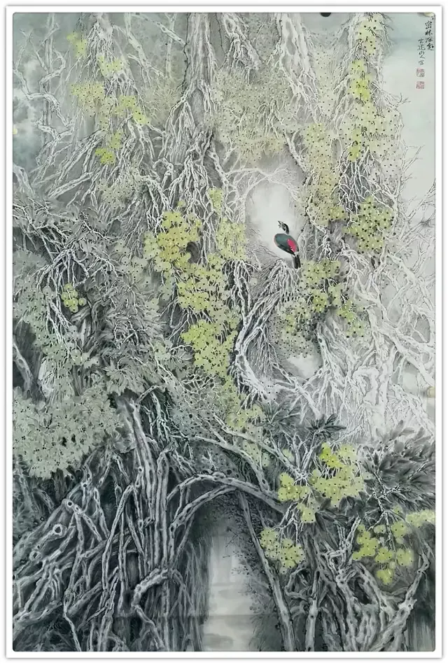 赵刚作品,不仅是令人叹为观止的艺术瑰宝,更深刻彰显着新时代文艺工作者“为人民而创作”的赤子情怀与大国风范。既承续了千年文脉的深邃厚重,又绽放出新时代的璀璨华光,在笔墨的灵动律动间,彰显着坚定的文化自信;于精妙的构图意境中,传递着楷模的磅礴力量。