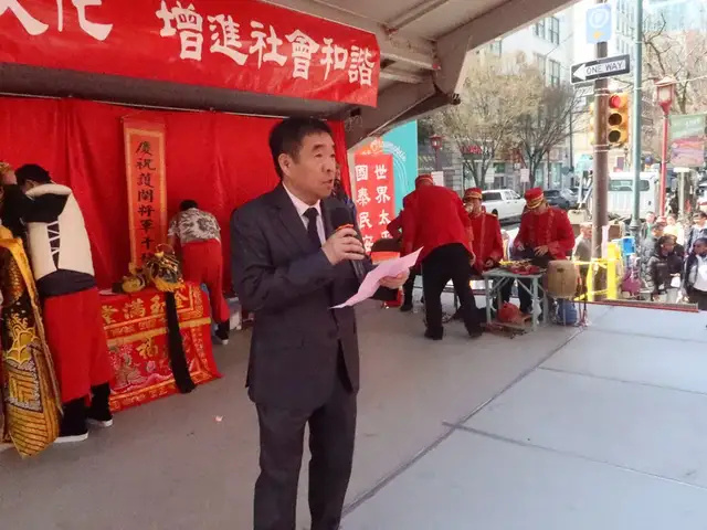 宾州华人侨团联盟秘书长张子爱致詞:尊敬父老鄉親,尊敬中國駐紐約总領館向裕韬、陳曲鋒領事,各位親朋好友,大家下午好,为了紀念護閩将军一千兩百年歷史千秋华誕,毎年举行了隆重的庆祝活动,弘揚中華傳統文化,在异国他乡傳承下去。感謝 所有的嘉賓鼎力支持和配合,使今天的场面熱鬧非凡。