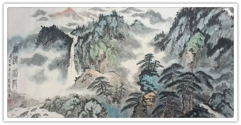 这种诗性境界的达成,得益于他对中国传统文化的深层理解。作为国家一级美术师,他不仅精于绘画,亦工诗词书法,其画作题跋常自撰诗句,将文学意境融入视觉表达。如《黄山松云》题曰:“千峰万壑入画图,松骨云魂气自殊。莫向险中寻捷径,人间正道是征途。”诗画互释,使作品获得了超越画面的精神深度。