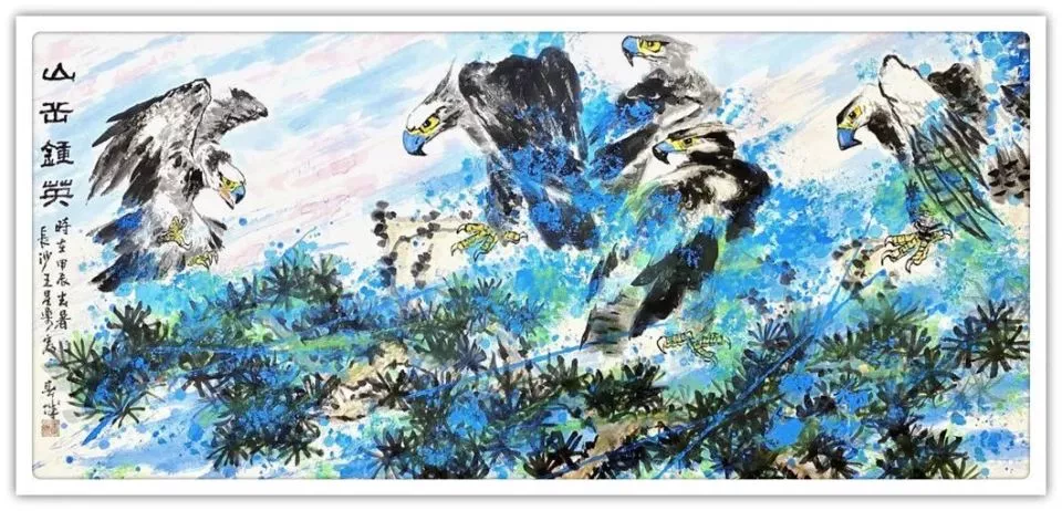 这种精神底色首先映现在他的笔墨语言中。师从石齐、齐辛民、齐良迟等大家,使他深悟传统绘画的笔墨三昧:石齐“三象合一”的创作理念教会他打破物象束缚,齐辛民大写意的泼辣洒脱赋予他用笔的胆识,齐良迟对文人画笔墨程式的精研则让他筑牢传统根基。但他并未止步于传承,而是将湖湘文化中的“蛮劲”融入笔墨,形成刚柔相济的独特风骨。观其山水,皴法多用斧劈与披麻的结合,既见北派山水的刚劲棱角,又含南派水墨的温润氤氲,恰如湖湘大地的山川地貌——既有张家界的奇绝险峻,亦有洞庭湖的烟波浩渺。这种笔墨张力,正是其人格中刚正与仁厚的艺术转化。