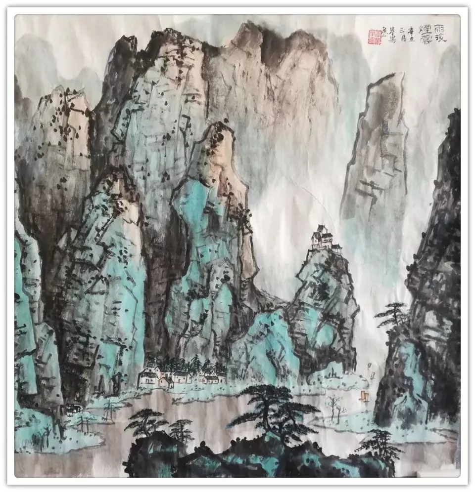 在赴美、法、德、日、韩等三十余国的交流中,这种“师法自然”的观念获得了跨文化的维度。西方美术馆里的经典名作,如梵高的炽烈、莫奈的朦胧、塞尚的结构,并未让他迷失于形式技巧,反而促使他重新审视中国绘画的独特价值。在比利时的布鲁日,他凝视运河边的光影变幻,却联想到太湖石的“皱漏瘦透”;在荷兰的风车田,他观察色块的分割组合,却想起八大山人花鸟的虚实布局。这种双向的观照,使他的画作既保持着中国笔墨的书写性,又暗含西方绘画的色彩构成意识。如其《漓江晴岚图》,以传统水墨勾勒山形,却在江面与天空大胆运用孔雀蓝与赭石的撞色,营造出既有东方诗意又具现代视觉冲击力的画面效果。