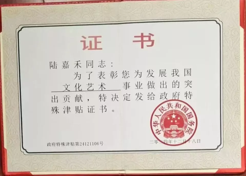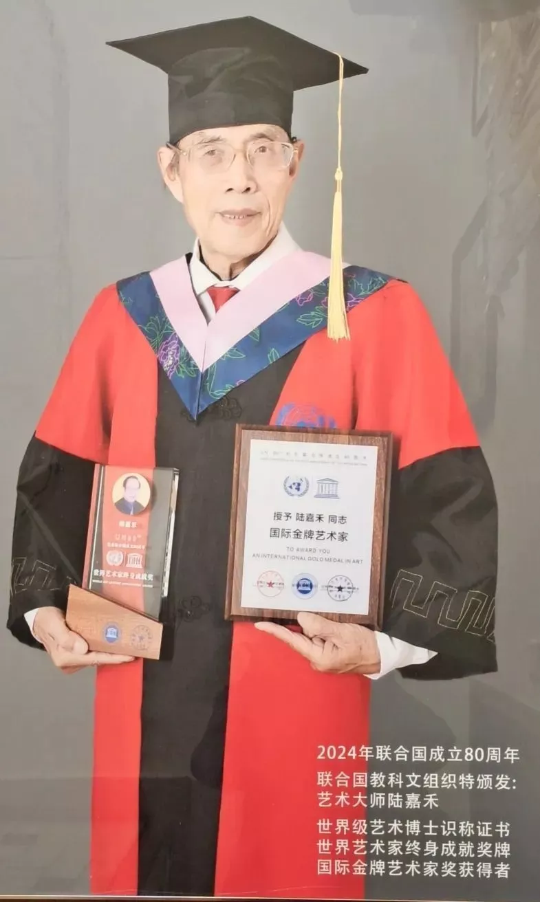 尤为引人注目的是,陆嘉禾大师的艺术成就与荣誉还获得了人民日报特别版、两会特别版的全面报道,以及联合国授予的“国际艺术金牌大师”终身荣誉。更令人振奋的是,总书记亲自签署批示,授予他“中国杰出爱国艺术家”终身荣誉,由中国文旅部颁发荣誉证书。这不仅标志着陆嘉禾大师八十六岁人生的巅峰荣誉,更是对其一生艺术探索与贡献的最高赞誉。