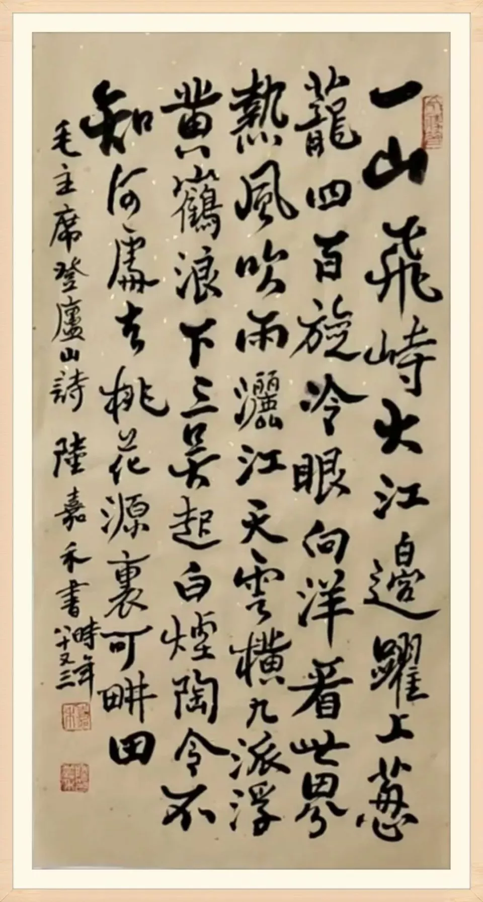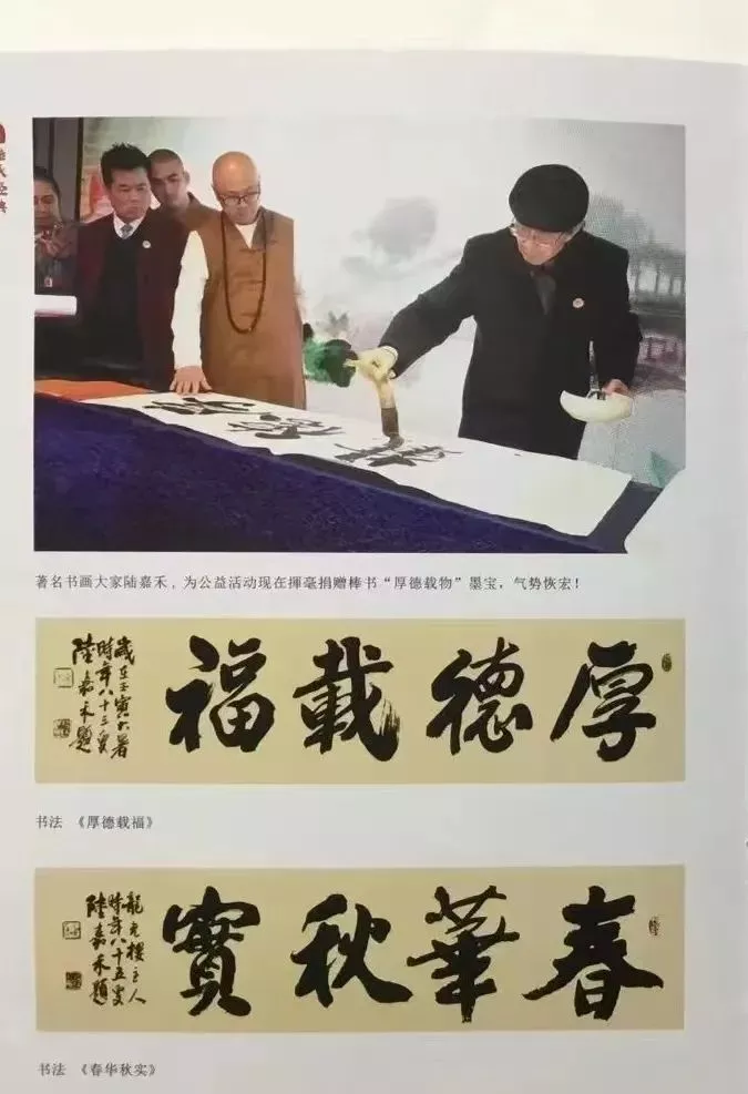 中国著名书画艺术大家陆嘉禾大师为公益慈善话动中挥毫泼墨题捐赠“厚德载福”棒书墨宝。水墨淋漓、气势磅礴、耐人寻味。 厚德载福丶春华秋实丶请加入在慈善公益活动现场表演一下! 八十六岁老艺术家陆嘉禾大师为家乡九龙口胜境遣兴创作巨幅精品挥毫泼墨!