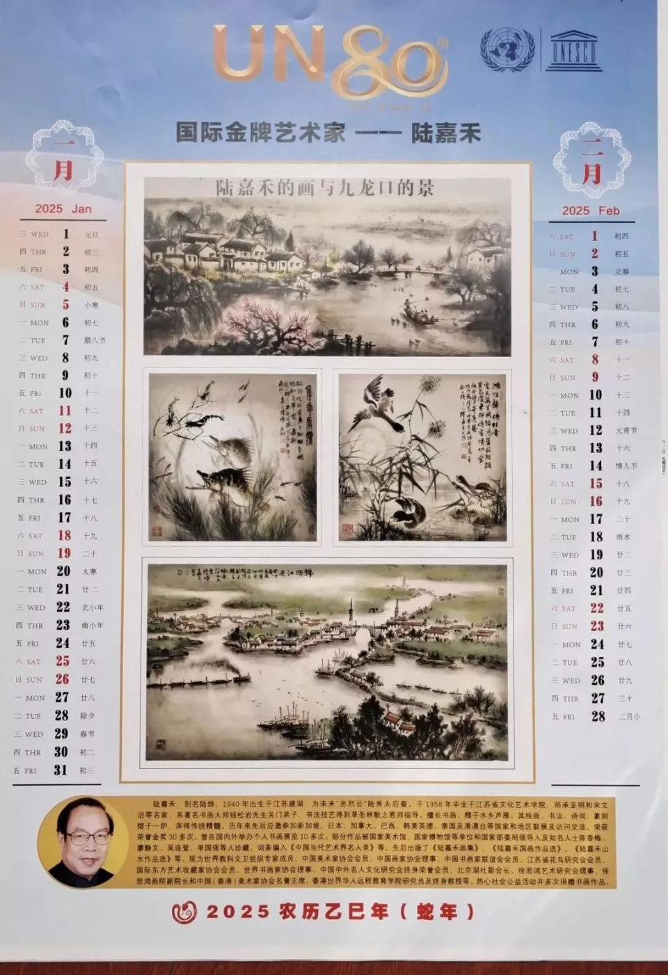 陆嘉禾:别名陆烨,1941年出生于江苏建湖,为宋末“忠烈公”陆秀夫后裔。于1958年毕业于江苏省文化艺术学院,师承亚明和宋文治等名家,系著名书画大师钱松岩先生关门弟子。擅长书画、精于水乡芦雁其绘画、书法、诗词。篆刻熔于一-炉,深得传统精髓。陆嘉禾历年来先后应邀参加新加坡、日本、加拿大、巴西、韩美英德、泰国及港澳台等国家和地区联展及访问交流。荣获荣誉金奖30多次。曾在国内外举办个人书画展览10多次。部分作品被国家美术馆、博物馆等单位和国家部委局领导人及知名人士陈香梅、廖静文等人珍藏。