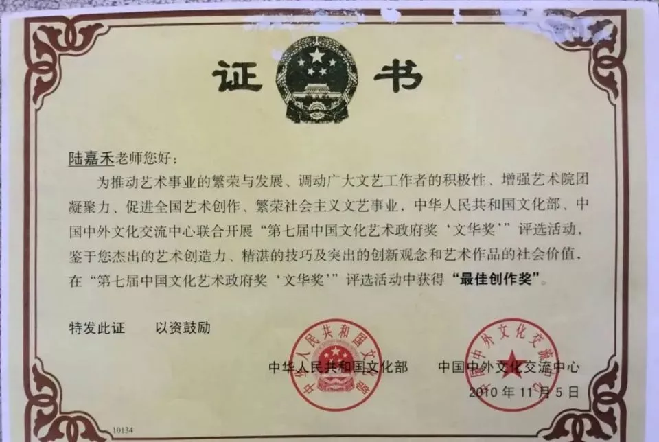 联合国教科文卫组委会丶在联合国颁发"国际金牌艺术家′′:陆嘉禾大师荣誉称号及金质勋章! "中国爱国艺术家"终身荣誉称号及证书丶中共中央宣传部:提名推荐总书记亲筆签名批示评定丶由中华人民共和国文旅部颁发″中国爱国艺术家″终身荣誉称号及荣誉证书。 中国文联特聘″中国爱国艺术家一一陆嘉禾大师丶为中国文联书画交流中心顾问丶特聘委任状金质牌证书 故宫博物院特别高级专家丶古今书画鉴定研究组委会单国强主任专访文化名家陆嘉禾大师作品实力后丶他激动的说:高手在民间丶大师在基层丶遣兴现场挥毫泼墨题″思逸神超"四个榜书墨宝相赠。