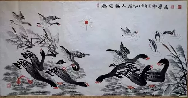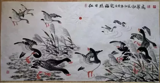 罗维存在鸿雁画创作上的创新性与独特性,更是他艺术生涯中的亮点。他敢于突破传统题材的束缚,将鸿雁这一看似平凡的题材赋予了新的生命力和艺术价值。在技法上,他兼收并蓄,将传统中国画的精髓与现代审美理念巧妙融合,形成了自己独特的艺术语言。他的鸿雁图,既有工笔画的细腻精致,又有写意画的洒脱不羁;既有对传统技法的继承与发展,又有对现代审美理念的融合与创新。这种创新性与独特性,不仅使他的鸿雁作品在画坛上独树一帜,更为中国书画艺术的发展注入了新的活力与灵感。