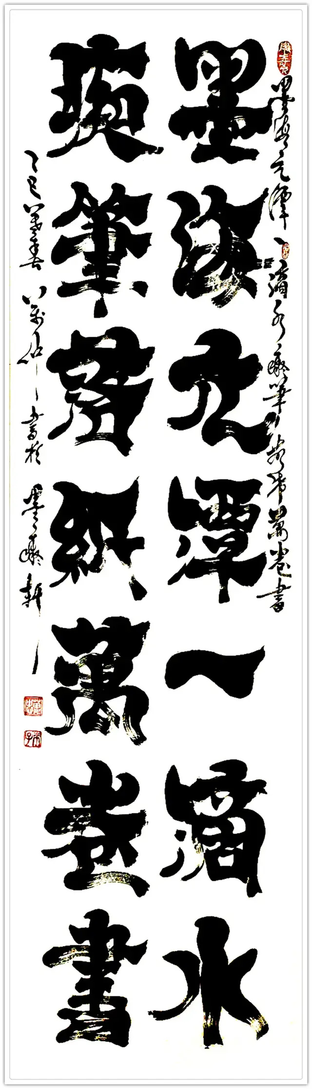 榜书:以“遒劲雄放、气势磅礴”著称,如“海纳百川”等大字作品。