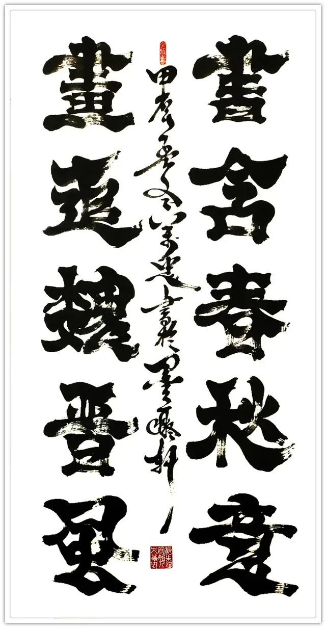 风格评价:学术界称其作品“兼具魏晋风韵与金石之气”,融合篆隶精髓与动态韵律,被赞为“前无古人,开宗立派”。