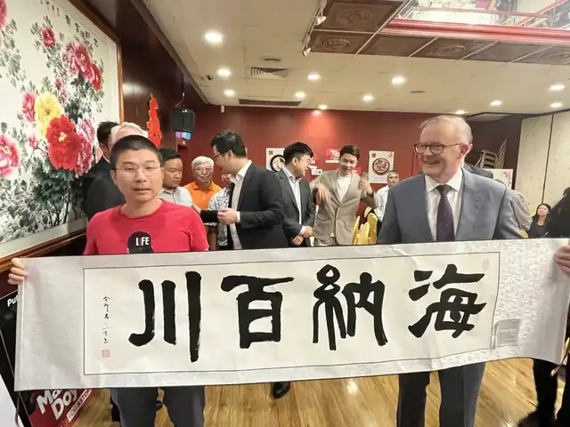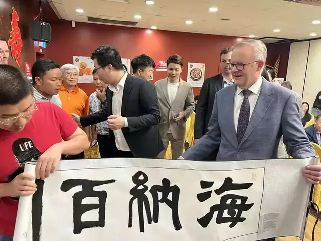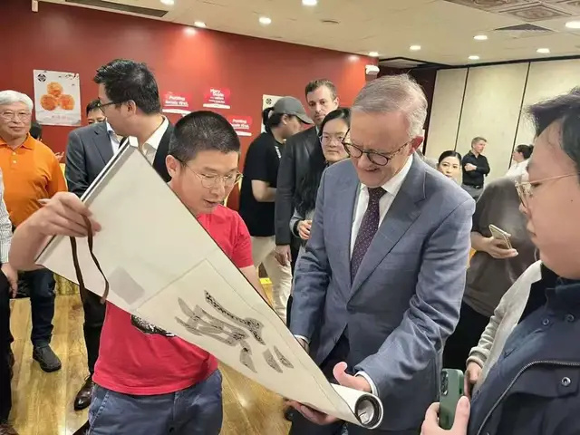 与现任澳大利亚总理阿尔巴尼斯对我的作品共同欣赏和展示
