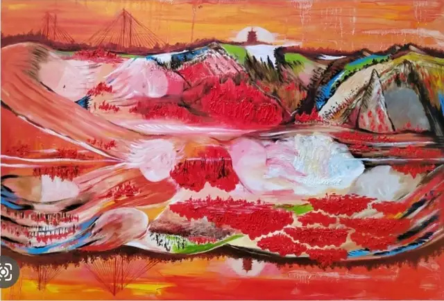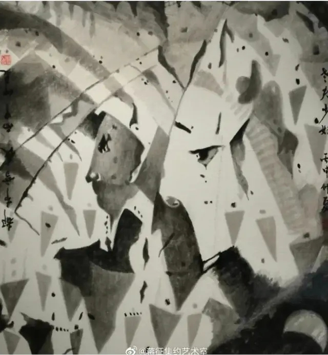 蒋征先生的艺术语言具有鲜明的辨识度,这种独特性源于他对绘画媒介本体的持续探索与突破。他创造性地将中国传统水墨的写意精神与西方抽象表现主义的能量感融为一体,形成了"意象表现主义"的独特风格。其作品《罗密欧与朱丽叶》是一件极具创新性和艺术深度的作品,其独特的“旋转绘画”技术不仅颠覆了传统油画的静态观赏模式,更以多重视觉叙事重新诠释了莎士比亚的经典悲剧。作品通过旋转画面可呈现四幅不同构图,实现了“一画多观”的动态效果,将传统静态艺术升华为集约化、多维度的艺术表达这种“前无古人”的创作手法,标志着艺术思维从静态到动态的跨越。蒋征先生作画,常使人想起东坡居士评吴道子之言:"出新意于法度之中,寄妙理于豪放之外。"观其笔下山水,非古非今,亦古亦今,在传统与现代的夹缝中开辟出一条独行之路。