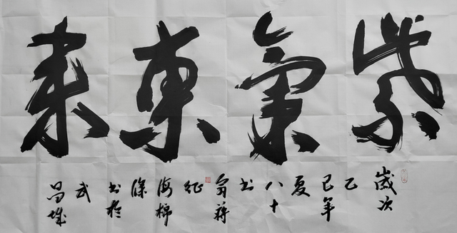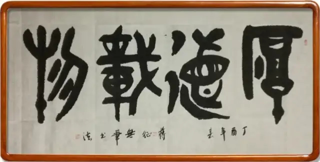 蒋征的海绵条书法代表了一种彻底的材料革命,它"信手拈来纸条布头、海绵杂物,恣意舞动,可以创新无笔书法写下虬龙蜿蜒、鸾凤徘徊的无笔墨宝"。这种创作方式完全颠覆了传统书法对工具材料的固有认知,开辟了一条前所未有的表现路径。海绵吸水之性异于狼毫,然"柔中带刚,虚中有实" 今观蒋征先生海绵书法,墨色氤氲处似有"元气淋漓障犹湿"之致。此般创造,恰合《考工记》"材美工巧"之训,证"君子不器"之深意。海绵条书法创造了全新的审美体验。由于材料的特性,作品往往呈现出独特的肌理效果和三维质感,这是传统毛笔书法难以达到的。正如王天齐博士的"无笔禅意书法"形成了"特别强的3D三维效果和艺术冲击力"一样,蒋征的海绵条书法也在平面中创造了空间深度,丰富了书法的视觉表现维度。这种创新不是对传统的否定,而是对书法表现可能性的拓展,正如书法评论家所言:"传统不是供奉的遗产,而是活着的基因。"