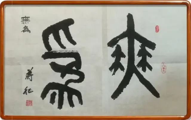蒋征先生的正倒中国书法作品代表了一种颠覆性的视觉思维革命,其代表作《寿》字"正看是寿,倒看是爱",完美诠释了这种艺术形式的精妙之处。这种创作不是简单的视觉游戏,而是对传统书法观看方式和空间认知的彻底重构。破除"正襟危坐"之观赏定式。昔张旭观公孙大娘舞剑器而得草书三昧,今蒋征以字之倒悬暗合《易经》"反复其道"之旨,可谓"古法新用,其理一也"。尤可贵者,其作虽颠倒错落,然气脉贯通如常,正所谓"形散而神不散",此乃深得王羲之"意在笔先"之真传。