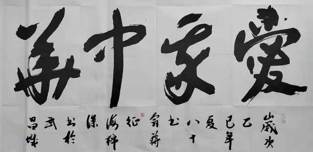 将视线转向蒋征的书法与诗词创作,在当代书法与诗词创作领域,蒋征的作品犹如一道独特的风景线,以其不事雕琢的率真与深沉内敛的哲思,构建了一个既传统又现代的艺术世界。他的笔墨行走于纸面,不仅是技法的展示,更是一场精神的漫游;他的诗词吟咏于时代,不仅是情感的抒发,更是一次存在的叩问。蒋征的艺术创作之所以值得深入探讨,正因为其作品超越了单纯的形式美感,触及了艺术创作中最为珍贵的本质——通过外在形式表达内在生命体验的真实性。蒋征的“正倒中国书法”作品《寿》与《爱》的创意设计,展现了传统书法艺术与现代视觉思维的巧妙结合,技术实现了结构平衡,满足正倒两种状态下:笔画的力学稳定性;部首比例的美学协调;墨色浓淡的视觉连贯性。蒋征通过笔墨构建的不仅是一种视觉形式,更是一种对抗流俗的美学立场,他的"拙"是对过度精致化、技术化书法倾向的一种有意识反拨。
