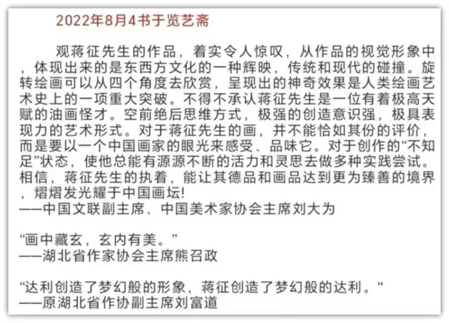 蒋征艺术之终极魅力,在于实现集约艺术创造思维与现实存在意识思考之深度交融。每一幅作品,皆为微观宇宙之生动写照,笔触间之轨迹犹如神秘密码,蕴含无尽玄机。“画中藏玄,玄内有美”(著名作家熊召政评语),颜料堆积之处,自有一宏大乾坤。观者不仅能感受色彩之灵动美,更能触摸时空之旋转律动与艺术之强烈震颤,仿若置身于奇幻深邃之艺术世界,流连忘返。