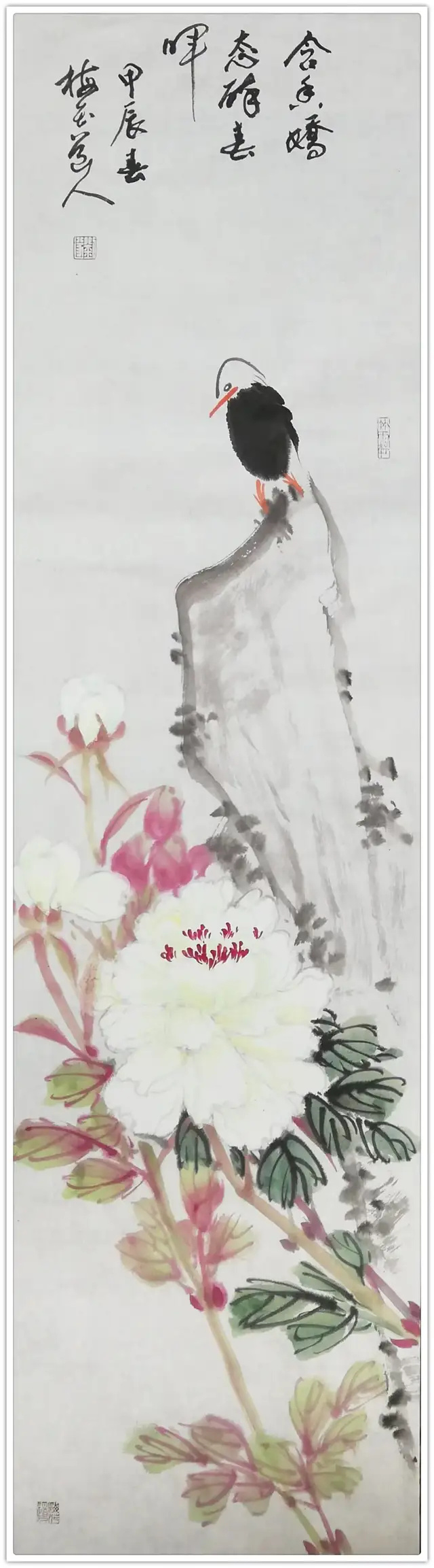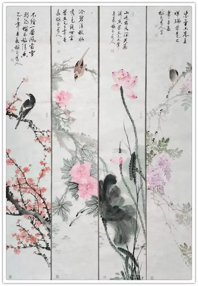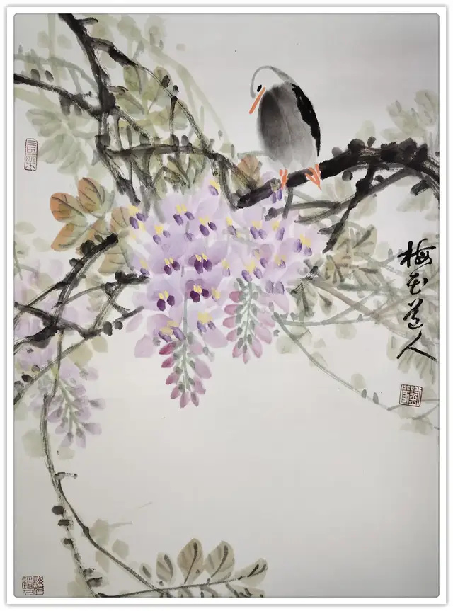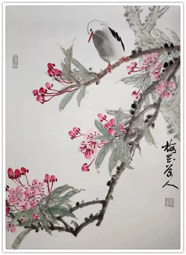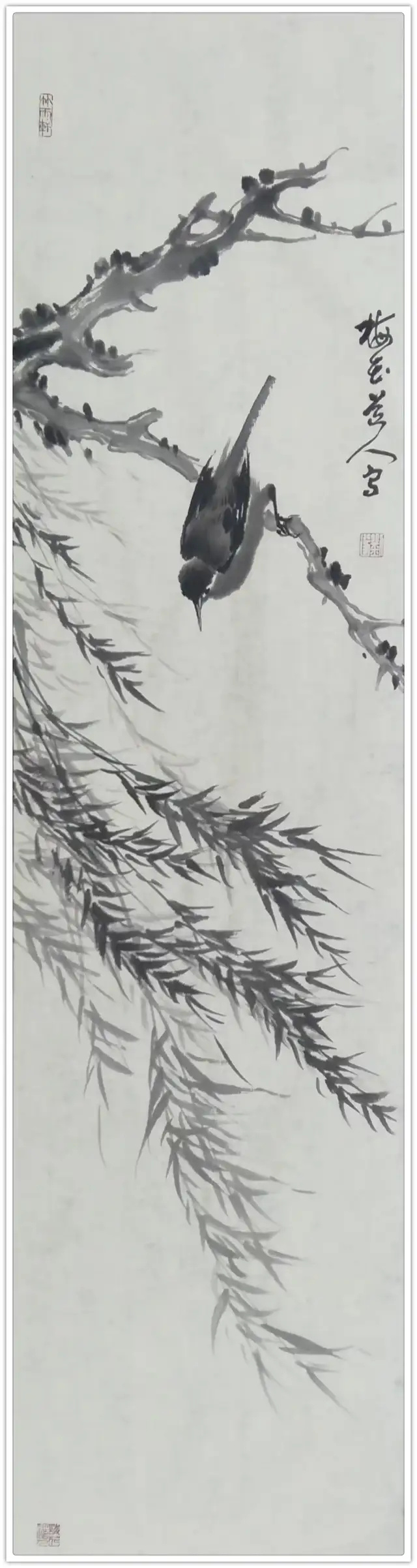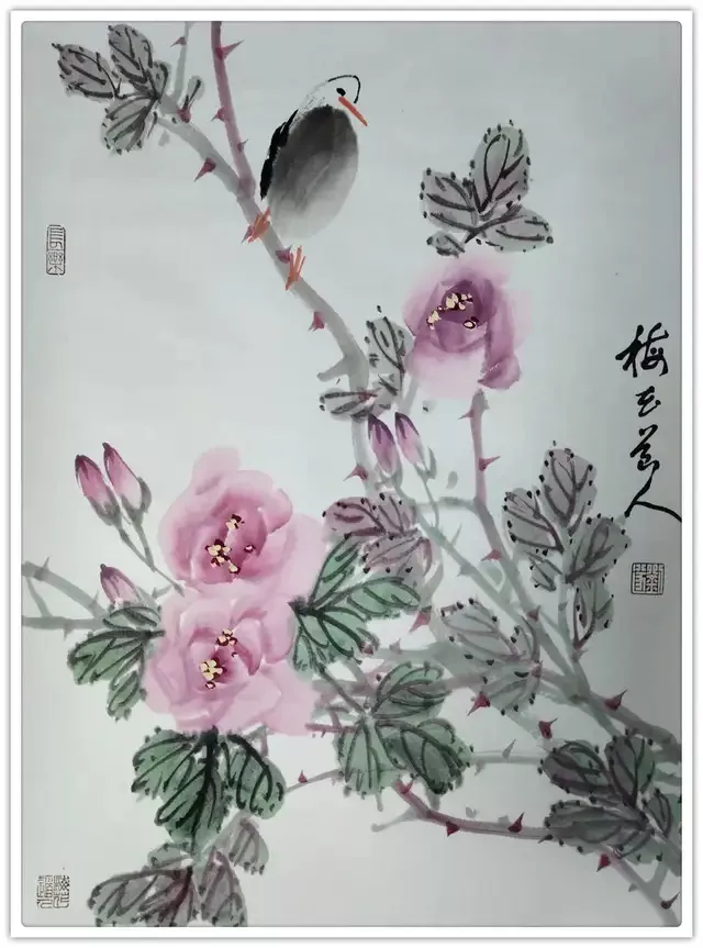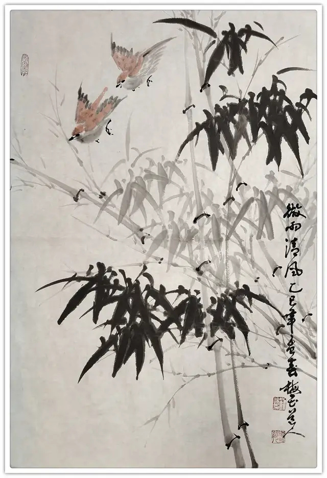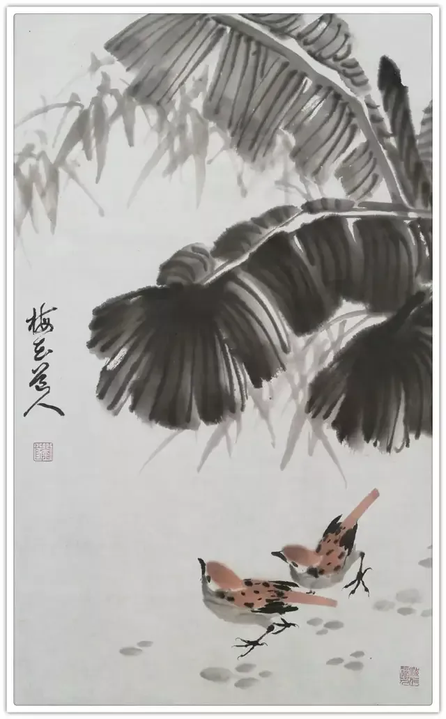 在刘遂的花鸟画中,能深刻感受到他对“形”与“神”关系的精准把握。他不仅仅满足于对花鸟外形的描绘,而是追求在“形似”基础上达到“神似”。如他笔下的风竹,在狂风肆虐中展现出坚韧不拔、宁折不弯的顽强精神;他画的梅,暗香浮动、疏影横斜,尽显梅花的冰肌玉骨、贞姿劲质,体现出梅花斗霜傲雪、报春不争春的品格。他以花鸟等物象来寄托自己对人生的思考,通过画作传递出自己的人文情怀。