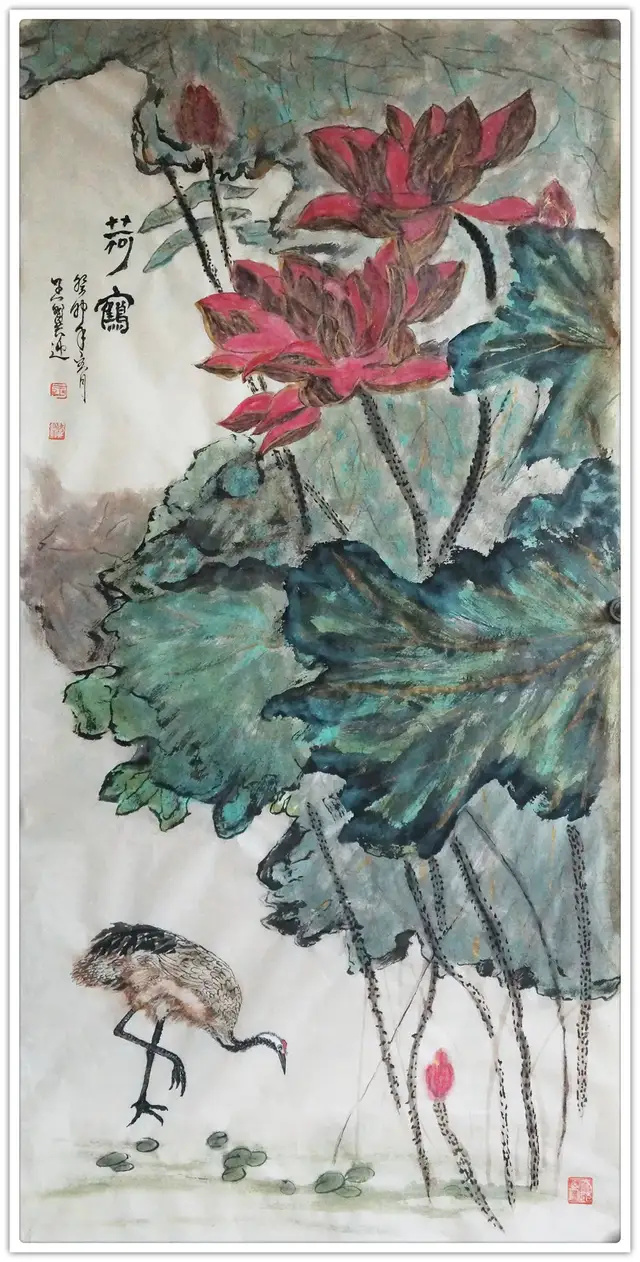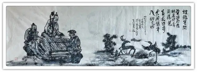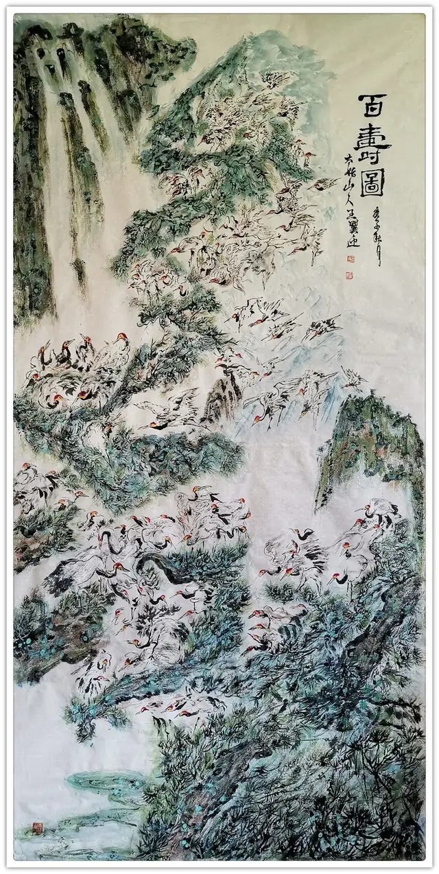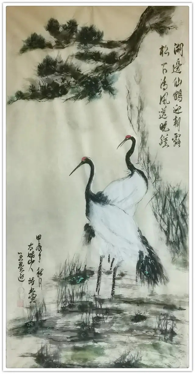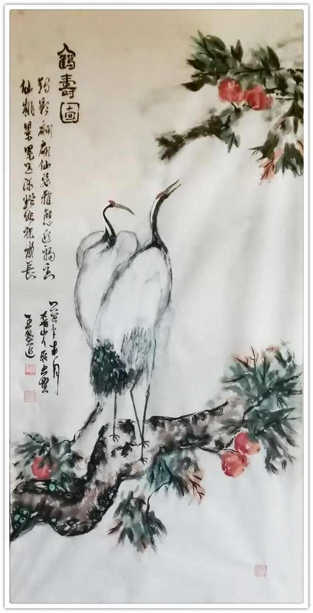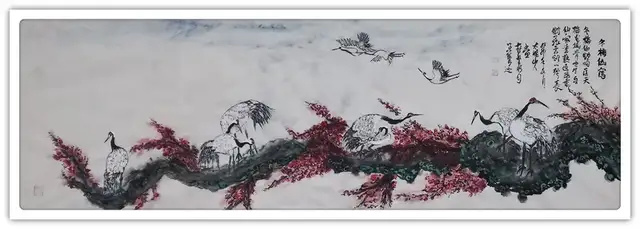 花鸟画《冬梅仙鹤》作品60x180cm (1)