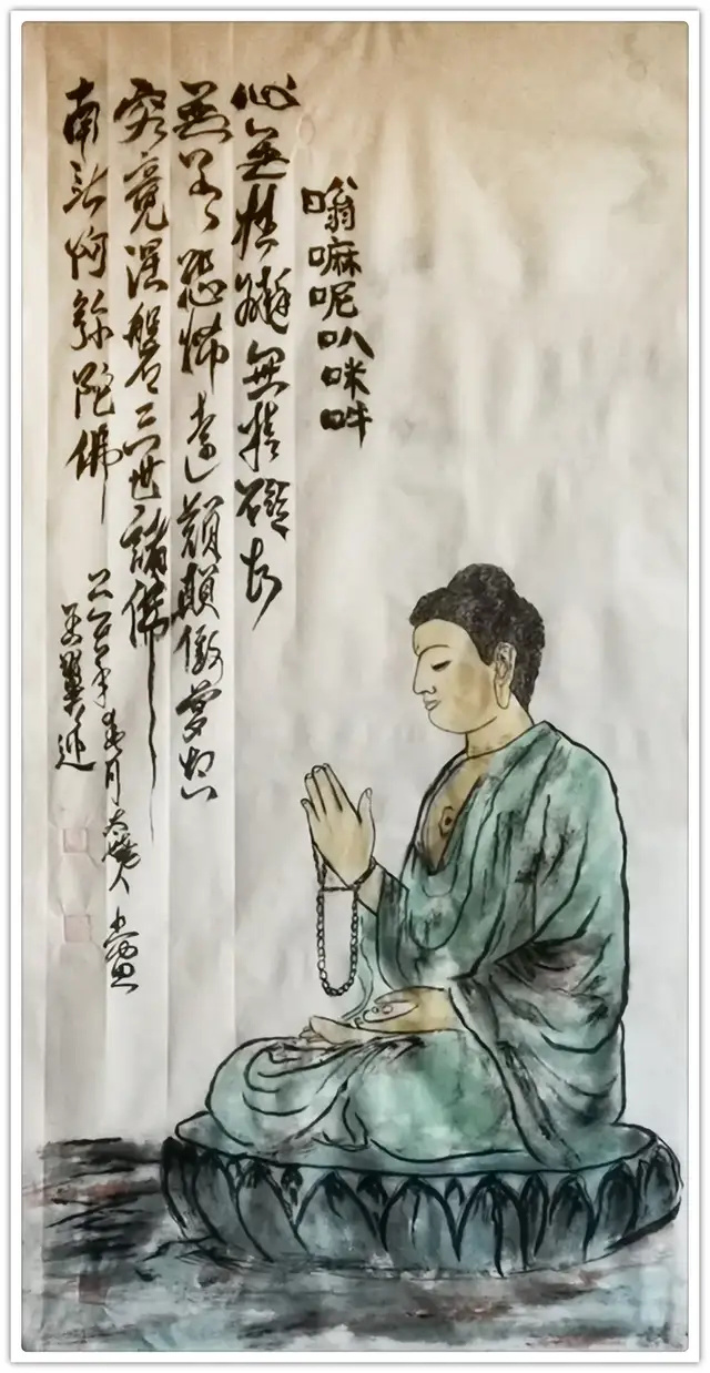 人物《嗡嘛呢叭咪吽》作品69x138cm