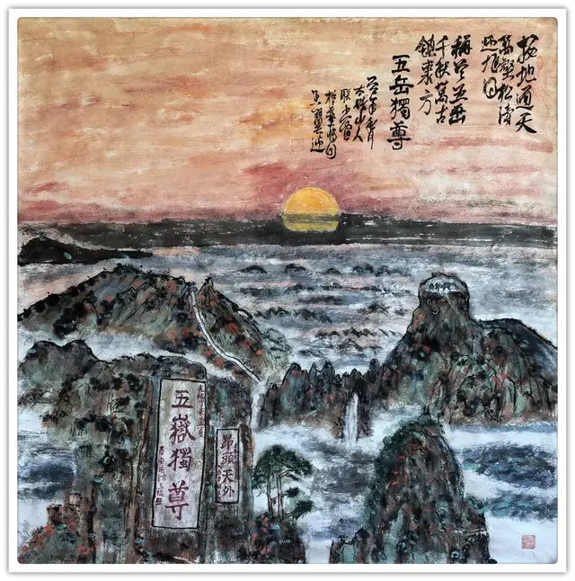山水画《泰山》作品120x120cm