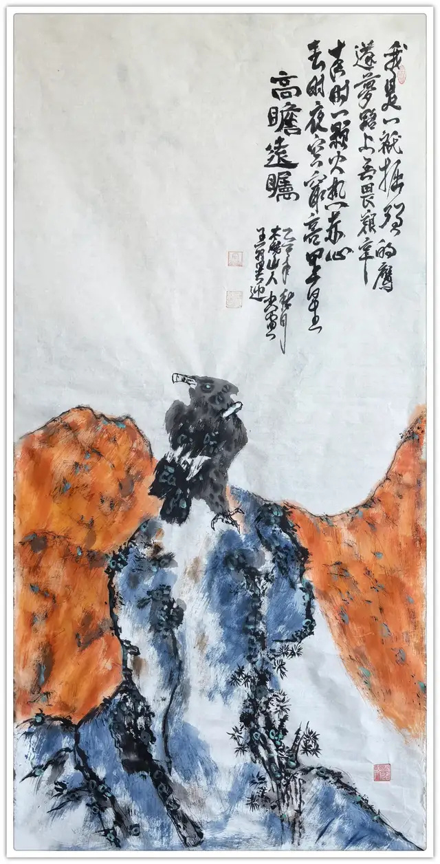 花鸟画《高瞻远瞩》作品69x138cm