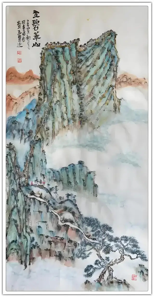 山水画《金碧华山》作品69x138cm