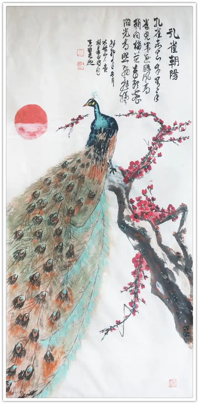 花鸟《孔雀朝阳》68x139cm