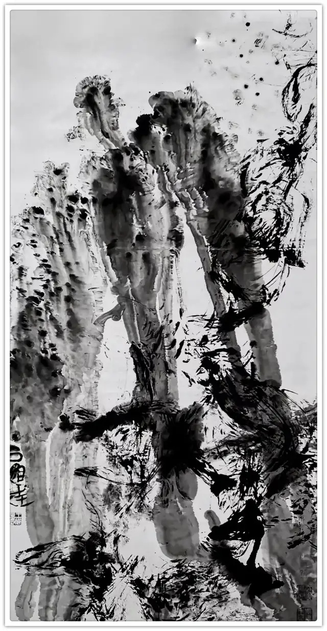 我和石头娃老师相处多年,认识这么长时间,石头娃是一位为人很谦虚低调的艺术家。但在山水画创作中,确实是令人震撼不已,尤其是在笔墨的运用上,特别优秀突出,达到了其他人做不到的高度!既有历史的沧桑境界美,也有自然万物的变化美,就是在这个艺术语言的基础上,整体画面非常具有当代的笔墨精神。