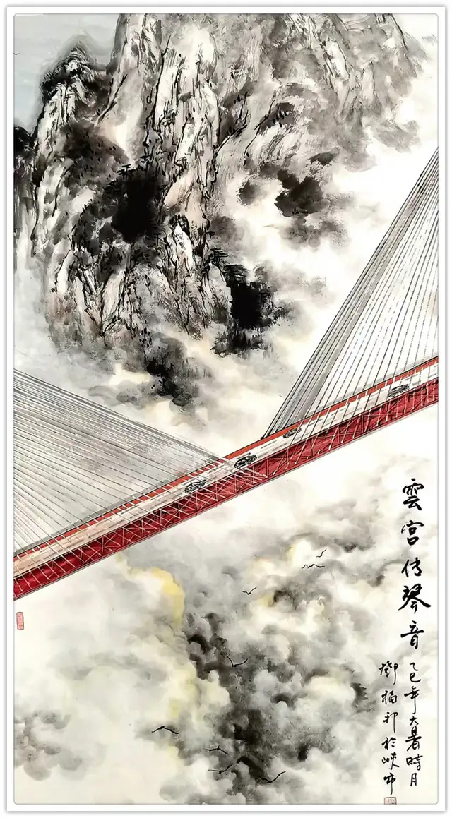 邓福邦先生将哲学与艺术的深度融合。邓福邦提出的“道化丹青”理念,是其艺术思想的灵魂。他认为,中国书画的本质是“道”的具象化表达,而老子“道可道,非常道”的哲学,则为这种表达提供了理论支撑。在《黄河明珠三门峡卷》的创作中,他以夫人书法家张云霞的题跋为引,将黄河的奔涌之势与“上善若水”的哲学相融合,通过留白与墨色的对比,营造出“有无相生”的意境。这种创作方式,不仅突破了传统山水画的叙事框架,更将中国哲学中的“天人合一”思想转化为视觉语言。观赏邓福邦先生的作品让我们明白,艺术不是对自然的模仿,而是对宇宙规律的揭示。他的作品超越了技法的层面,上升到精神的高度。