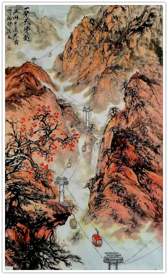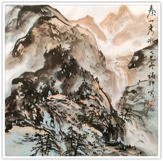 邓福邦先生从传统中走出的创新者。邓福邦的艺术生涯始于对传统的深刻敬畏与精准把握。师从顾森、龙瑞等名家,他系统研习了中国书画的笔墨精髓,从《芥子园画谱》的程式化语言到宋元山水的气韵生动,从书法篆刻的线条张力到金石学的考据严谨,这些训练为他奠定了坚实的传统根基。然而,邓福邦并未止步于此。他敏锐地意识到,传统艺术的现代转型需要“破”与“立”的双重勇气。在创作《东方》《喜梅图》等作品时,他大胆突破传统构图,以抽象化的笔触重构山水意象,将老子“道法自然”的哲学融入画面,使作品既保留中国画的写意精神,又具备现代艺术的视觉张力。这种“师古而不泥古”的态度,正是他能够创立秦山画派的关键。