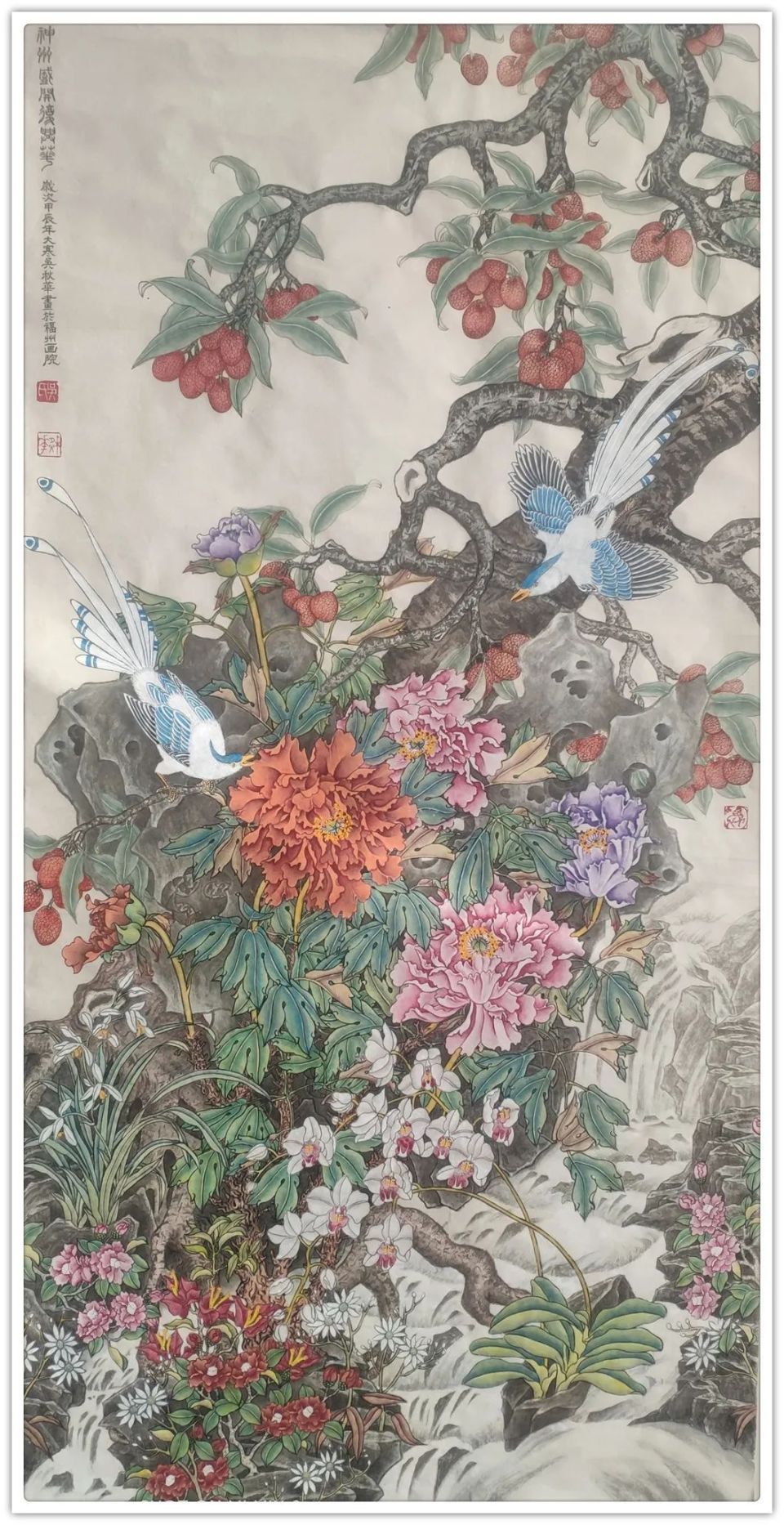 吴秋华,福建省福州市人,中共党员,国家一级美术师。1980年就职于福州市美术馆,1993年至2000年担任福州市美术馆美术室主任,并担任福州业余美术学校和中国书画函授大学福州分校教务主任,同期担任福州市美术家协会和福州市书法家协会秘书长助理。2000年调入福州画院,福州画院特聘画师,福州画院原第三、四任工会主席,福建省美术家协会会员。由中国当代美术出版社出版《新中国文化大使》入编4幅作品。中国人美出版社出版(大红袍)《中国近现代名家典藏画集综合卷》入编5幅作品,《中国书法史》(近现代卷)入编4幅作品,并被聘为艺术顾问,中国美术出版社出版《中国绘画全集》入编6幅作品,由人民美术出版社出版《中国书画百年史.百位名家》入编5幅作品,由中国美术出版社出版《世界美术教育史》入编3幅作品,并被授予“优秀书画导师”荣誉称号。由中国美术出版社出版《艺坛脊梁——中囯当代书画名家代表人物(10人集》,入编10幅作品。中国大众文化学会书画艺术专业委员会委员,《中国艺术博览》编委会顾问。 《红岩颂》 171×93cm 2024年 《温馨家园》 138×66cm 2024年 《良辰美景》 136×68cm 2024年 《生机勃勃》 171×93cm 2018年 《时光静好》 171×93cm 2022年 《国运似锦 三羊开泰》 136×68cm 2024年 《美好时光》 136ⅹ68cm 2024年 《锦绣中华园》 138×68cm 2024年 《一家亲》 136×68cm 2024年 《福寿长春》 138×66cm 2023年 《长寿花开》 136X68cm 2025年 《神州盛开复兴花》 138×66cm 2025年 《祖国万岁》 138×66cm 2023年 《春华秋实》 136×68cm 2023年 《四季皆春 百鸟贺岁》 240×120cm 2015年 《寿带吉祥》138x33cmx4 2023年 《时光静好》138X33cmX4 2022年