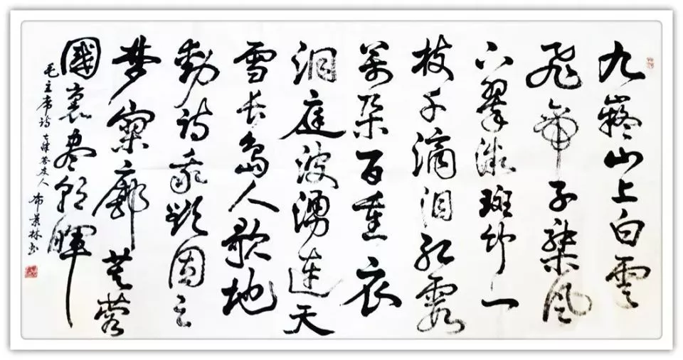 布景林的作品巧妙融合古典美学与现代艺术,赋予深刻的思想性与文化厚度,每一幅作品都是对文化根脉的探寻与艺术边界的超越。其书画风格独树一帜,笔墨间流淌着浓郁的东方意蕴,既彰显了传统文化的深邃厚重,又赋予了现代审美的灵动与张力,堪称文化传承与艺术创新的典范。