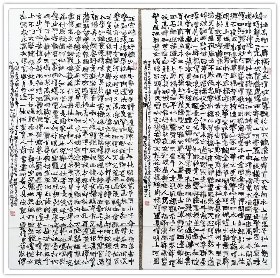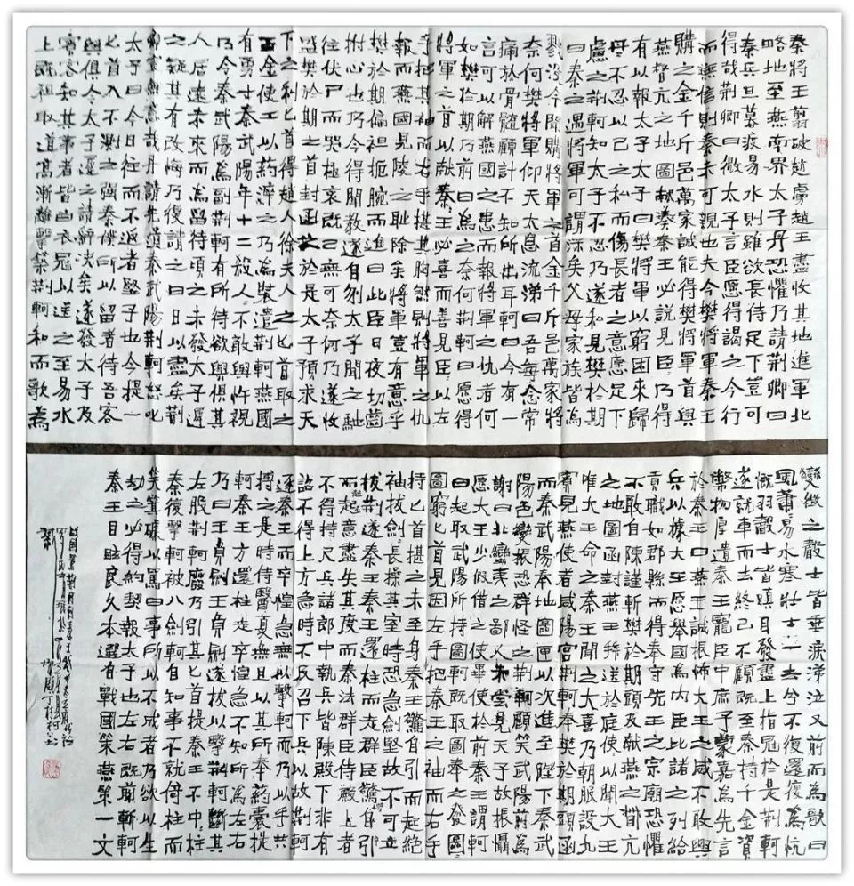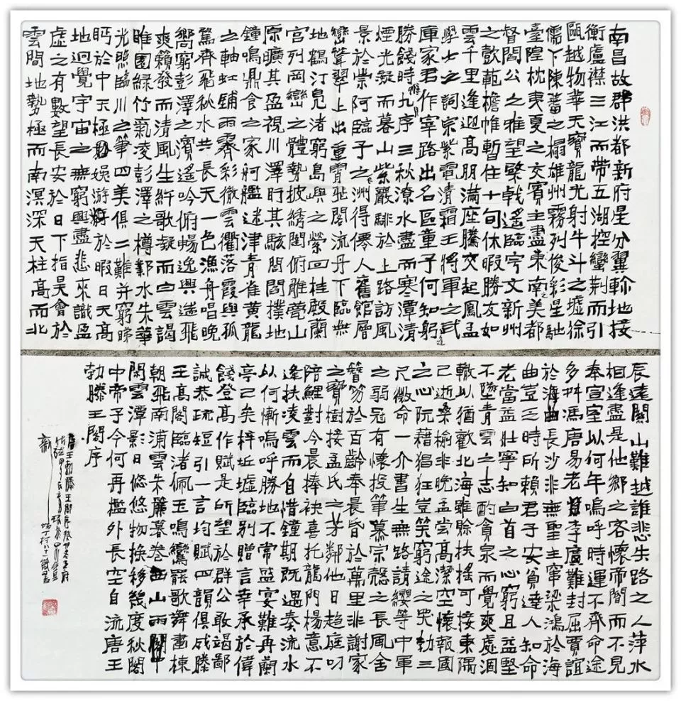 《兰亭序》楷,篆各一幅 韩愈《师说》 沈括《雁荡山》 沈括《雁荡山》 沈括《雁荡山》 四条屏,手泽东《念奴娇,井冈山》 宋,苏轼《念奴娇,赤壁怀古》 宋,苏轼《前赤壁赋》 宋,文天祥《正气歌》六幅 宋,文天祥《正气歌》六幅 宋,文天祥《正气歌》六幅 宋,文天祥《正气歌》相同内容四幅 宋,文天祥《正气歌》相同内容四幅 唐,韩愈《送李虚归盘谷序》 右:自撰曲文《游记》在:杜牧《阿房宫赋》 战国策《荆轲刺秦王》 战国策《邹忌讽齐王纳谏》 长卷《滕王阁序》 楷书,8尺X2尺 长券《滕王阁序》楷,篆各一件12尺X2尺 中:《毛泽东诗词五首》两边:《唐诗二首》 自撰文:《雅安廊桥》《忆少牟》各一幅 自撰文:《忆少年》相同内容四幅 自撰文:《忆少年》相同内容四幅