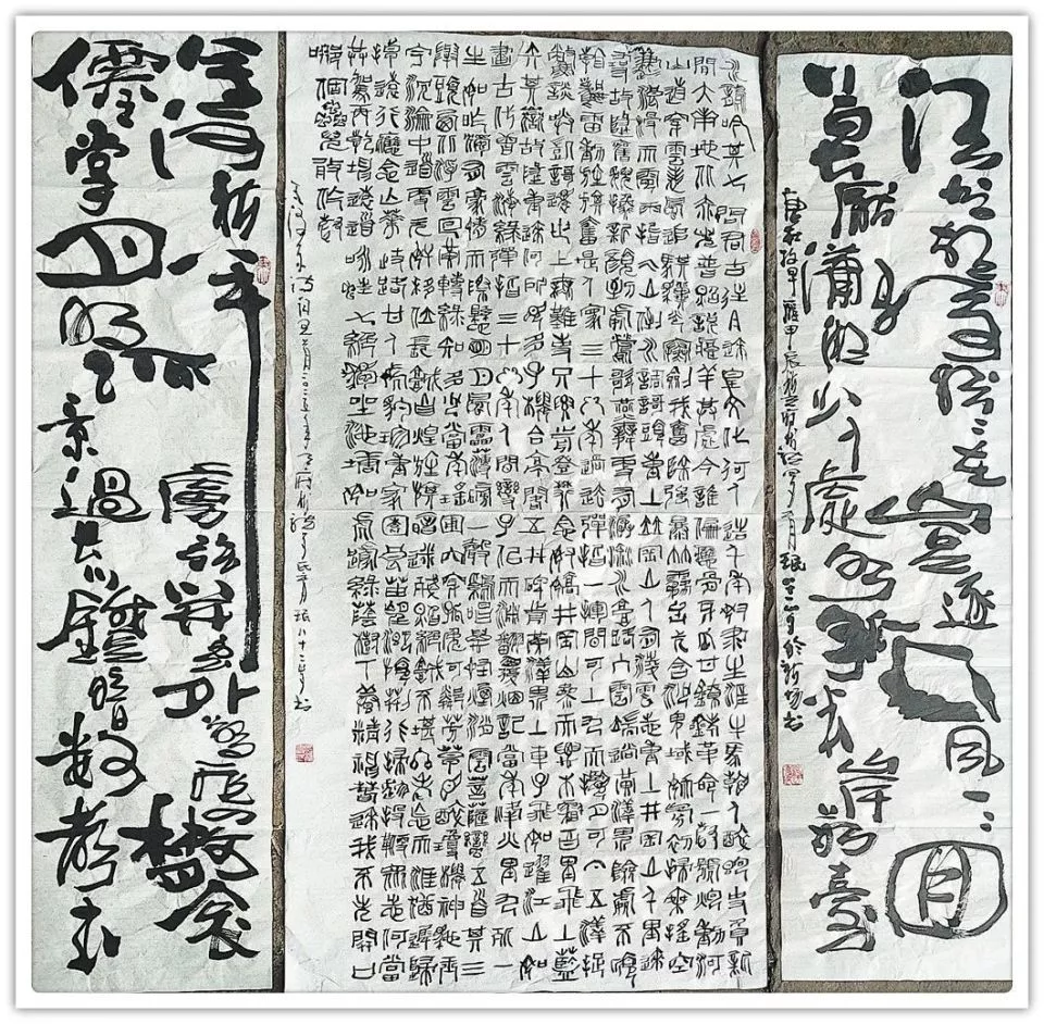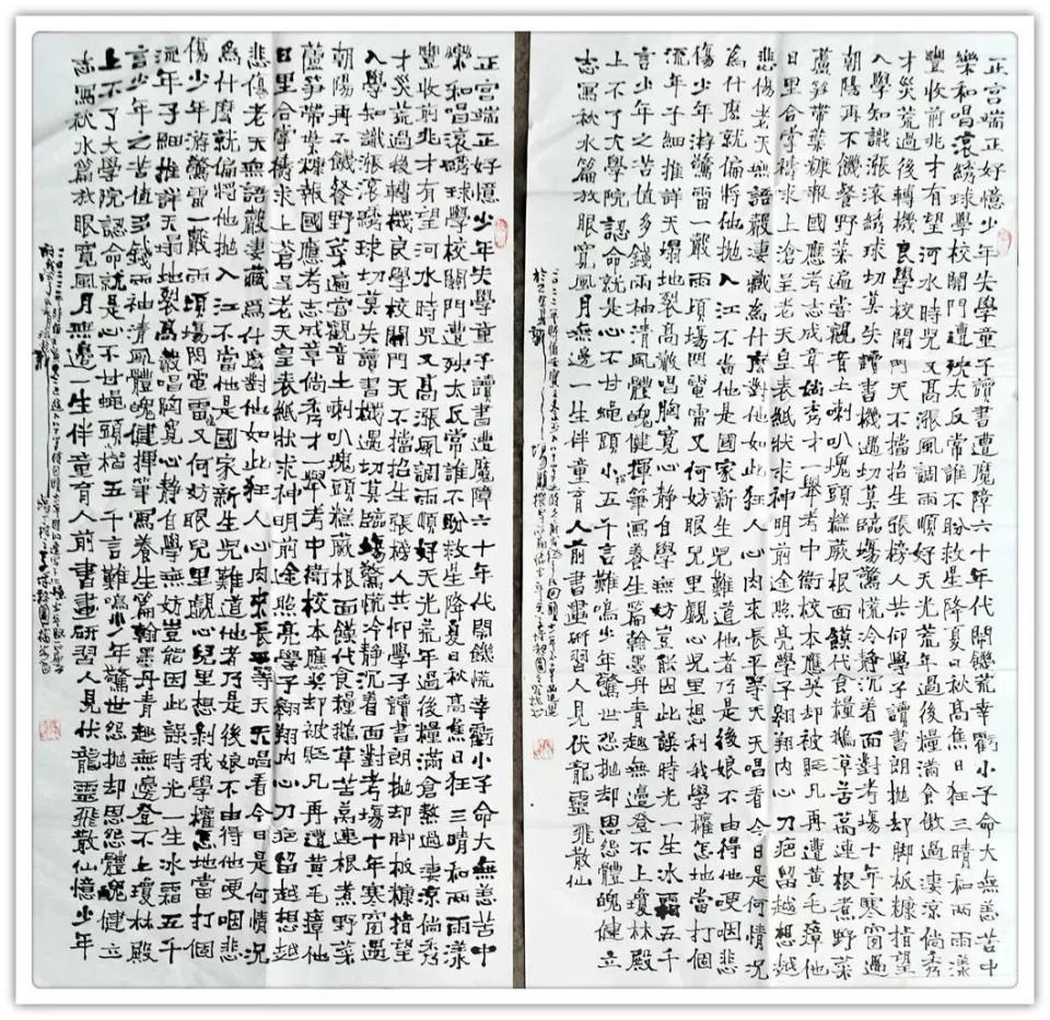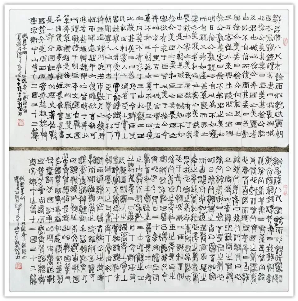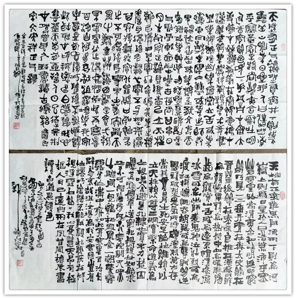 《兰亭序》楷,篆各一幅 韩愈《师说》 沈括《雁荡山》 沈括《雁荡山》 沈括《雁荡山》 四条屏,手泽东《念奴娇,井冈山》 宋,苏轼《念奴娇,赤壁怀古》 宋,苏轼《前赤壁赋》 宋,文天祥《正气歌》六幅 宋,文天祥《正气歌》六幅 宋,文天祥《正气歌》六幅 宋,文天祥《正气歌》相同内容四幅 宋,文天祥《正气歌》相同内容四幅 唐,韩愈《送李虚归盘谷序》 右:自撰曲文《游记》在:杜牧《阿房宫赋》 战国策《荆轲刺秦王》 战国策《邹忌讽齐王纳谏》 长卷《滕王阁序》 楷书,8尺X2尺 长券《滕王阁序》楷,篆各一件12尺X2尺 中:《毛泽东诗词五首》两边:《唐诗二首》 自撰文:《雅安廊桥》《忆少牟》各一幅 自撰文:《忆少年》相同内容四幅 自撰文:《忆少年》相同内容四幅